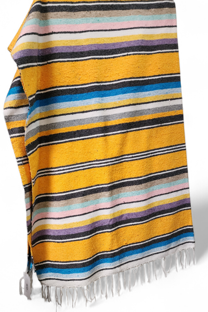These heavyweight Blankets are super vibrant and colourful.  Because they are each Handwoven on a loom in the traditional style by Mexican Artisans, no two blankets are ever the same.  They make a perfect addition to any space and are really popular with Classic Car Owners to throw over the back seat.  Great to keep around the house or in the car for picnics or trips to the beach and they can also double as a hard wearing floor rug to brighten up any indoor or outdoor area.