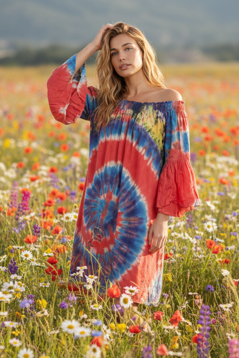 Tie Dye Off-the-Shoulder Dress